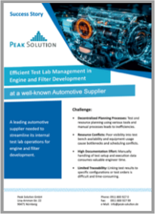 Optimierung des Ressourceneinsatzes in der Motor- und Filterentwicklung mit der Peak Test Management Suite