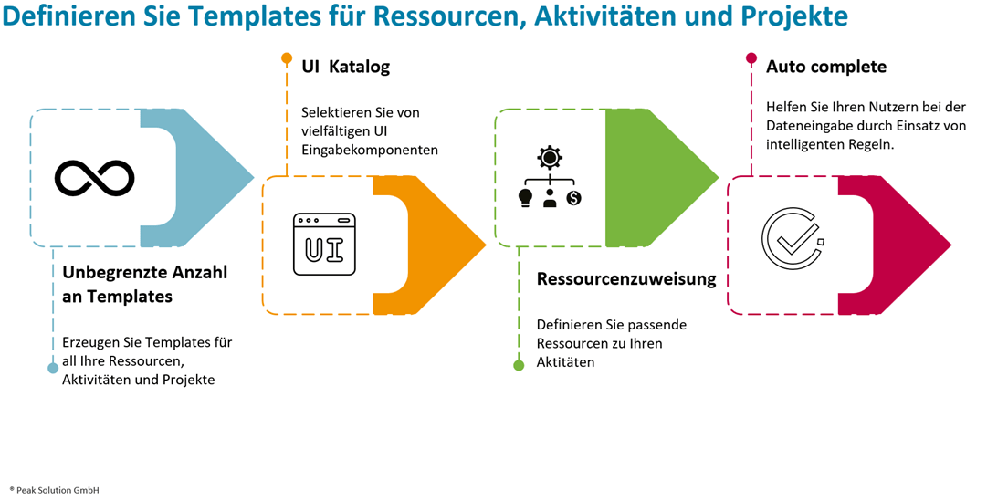 Nutzen Sie frei definierbare Vorlagen, um Ihre Aktivitäten zu beschreiben
