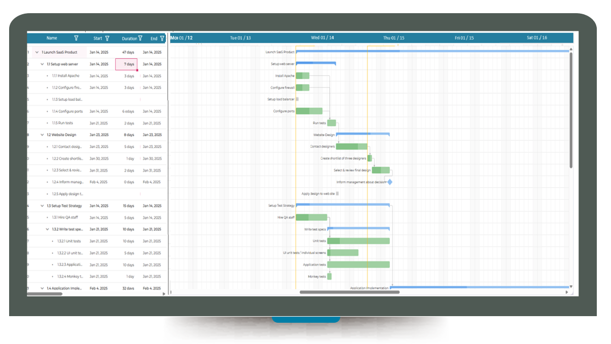 PeakTMS hilft Ihnen, alle Ihre Aktivitäten auf verschiedenen Ebenen wie Projektebene, Testreihenebene, Testebene und Aufgabenebene zu planen. Dabei können Sie die Abarbeitung ihrer Projekte bequem im Projektkalender verfolgen.