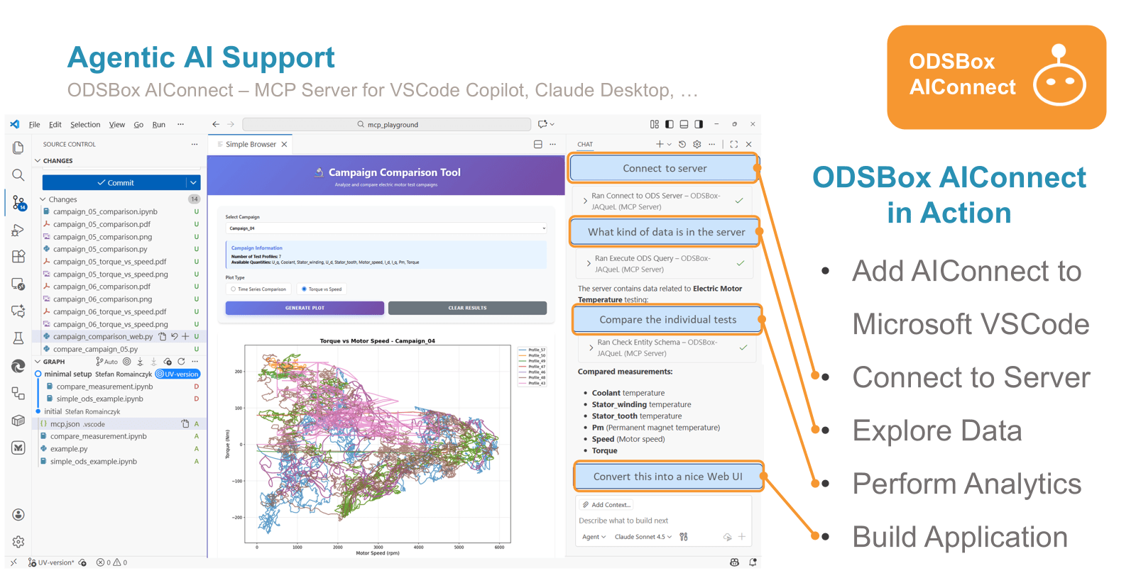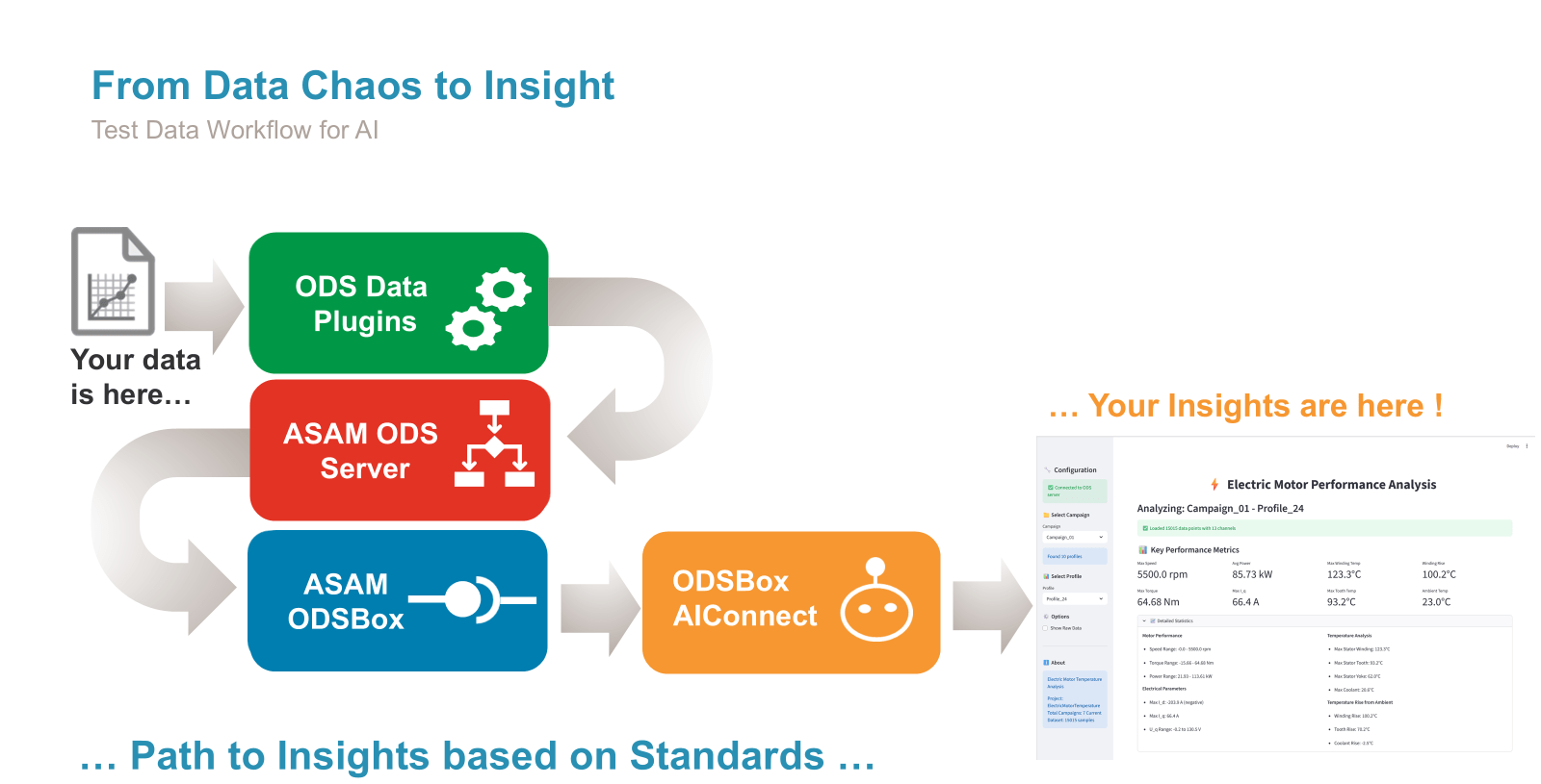 Die Kombination aus ASAM ODS DataPlugins, dem ASAM ODS-Datenmodell, der ASAM ODSBox und dem ASAM ODS AIConnector bietet die notwendigen Funktionen und Fähigkeiten, um Test- und Messdaten zu einem erstklassigen ML-Bestandteil zu machen – bereit für den Einsatz in agentischen KI-Workflows.