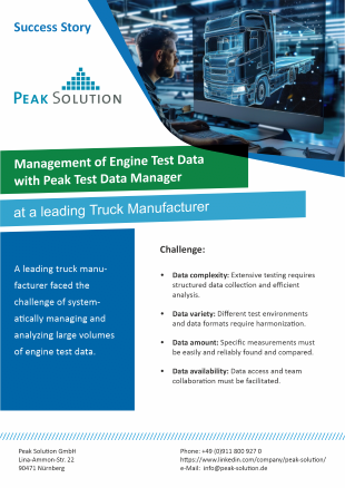 The success story of the company shows how a well thought-out test data management system, supported by an experienced partner like Peak Solution, can make a decisive contribution to increasing efficiency and quality assurance in engine development. Companies facing similar challenges can benefit from Peak Solution's expertise and solutions to take their testing processes to the next level.