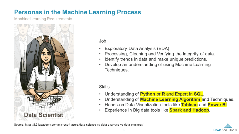 To detail out the requirements of ML tools and applications, let’s look into the job profile and skills of a typical data scientist: