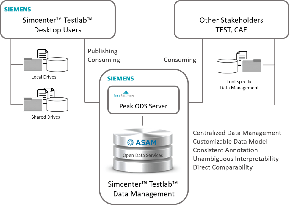 For further details on how Peak ODS server integrates with Simcenter™ Testlab™ please see: https://blogs.sw.siemens.com/simcenter/simcenter-testlab-2206-scalable-data-management/ or download the ASAM Application Success Stories from ASAM:GUIDE.