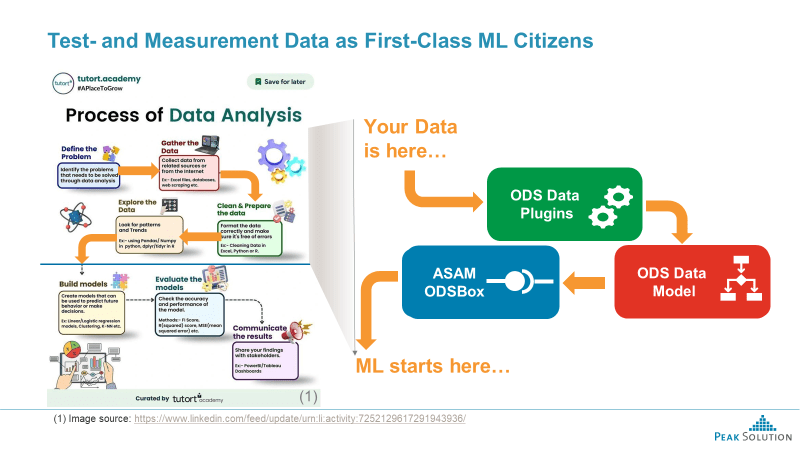 The combination of ASAM ODS DataPlugins, with the ASAM ODS (Base) Data Model and the ASAM ODSBox provide the needed functionalities and capabilities making test- and measurement data a first-class ML citizen.